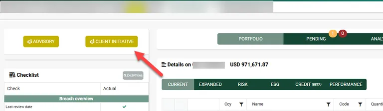 Check that PTF, AD, PR,ST buttons are present and Client & Roles card is displayed